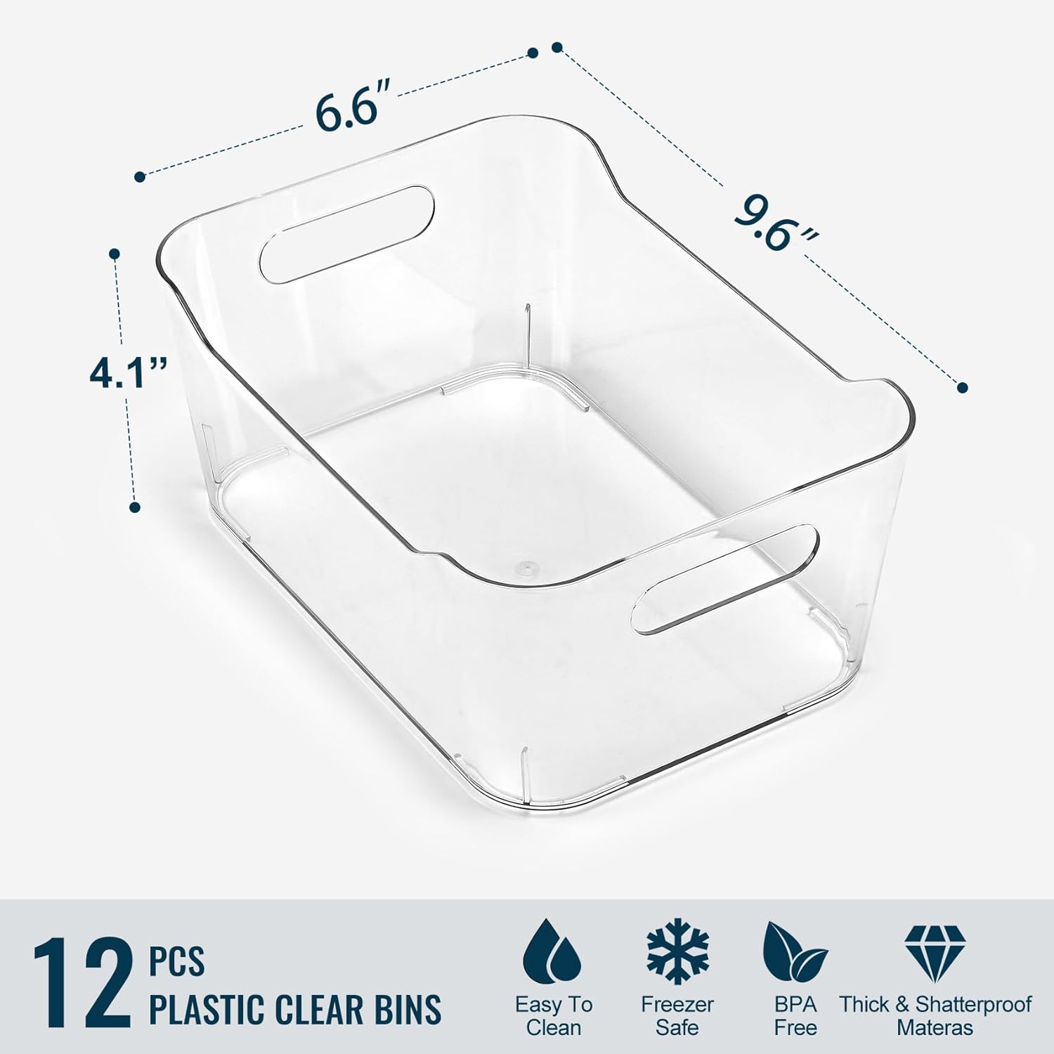 Keep your home, kitchen, bathroom, office, pantry, RV, and fridge organized with this 12 PACK Multi-Use Clear Plastic Storage Bins from the SOHO Collection. These versatile bins are perfect for storing a variety of items and come with convenient labels for easy identification. The durable plastic construction ensures long-lasting use, while the clear design allows you to easily see the contents inside. Whether you're tidying up your shelves, cabinets, or countertops, these storage bins are the perfect solution for keeping your space neat and tidy. Say goodbye to clutter and hello to organization with these handy storage containers.